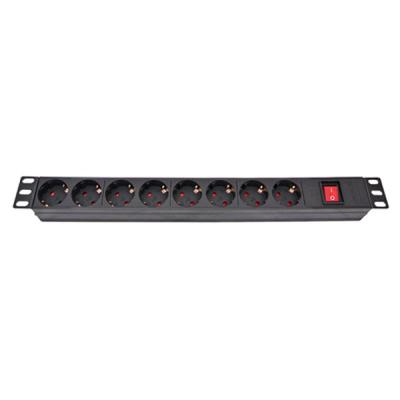 Силовой блок ESERVER 19" 8 розеток, выкл., алюм. корпус PDU 220В, 16А (WT-2261A-GER-8WAY) предназначен для распределения питания с напряжением 220 В. Крепление блока электрических розеток на 19” направляющих осуществляется в четырёх точках и занимает 1U. Для подключения используется сетевой шнур с вилкой для включения в розетку сети и разъем для включения в блок розеток.
