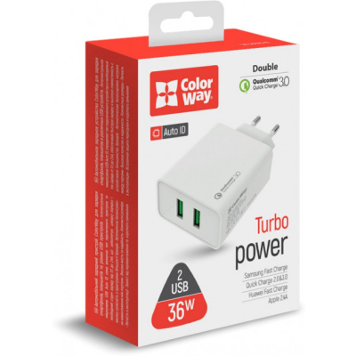 | Дополнительные характеристики | сетевое зарядное устройство ColorWay для быстрой зарядки смартфонов, планшетов и различных USB устройств.