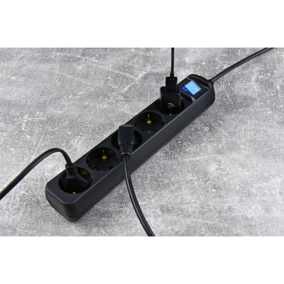 Сетевой фильтр питания 2E 5xSchuko, 3м black (2E-U05ESM3BK) |