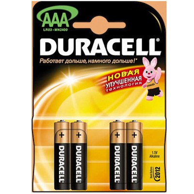 Батарейка Duracell AAA лужні 4 шт. в упаковці (5000394052543 / 81545421) Типоразмер - AAA (LR03), электрохимическая система - щелочная (Alkaline/LR), Количество в упаковке - 4 шт