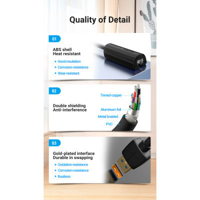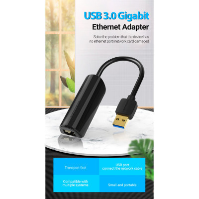 Переходник USB 3.0 to Ethernet RJ45 1000Mb black Vention