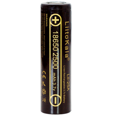 Аккумулятор 18650 2500mAh Li-Ion, (2450-2650mah), 3.7V (2.75-4.2V), Blac Liitokala (Lii-25A) Типоразмер - 18650, электрохимическая система - литий-ионная (Li-ion), Емкость - 2650mah, Количество в упаковке - 1 шт